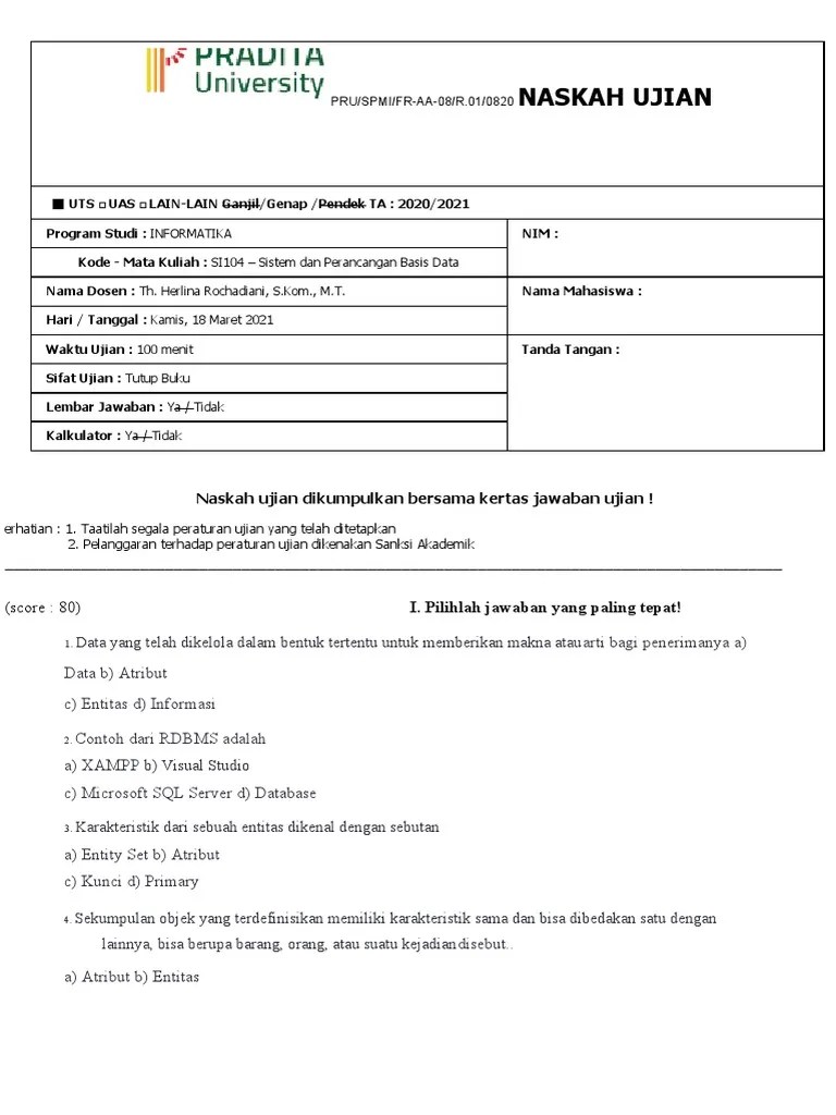 Sistem informasi akademik berbasis web untuk membantu dalam pengelolaan data. Pada pengolahan data tersebut akan di dapat . Software database ini dapat berfungsi atau berjalan pada semua platform sistem operasi yang biasa digunakan (windows,. Ini adalah data akademik mahasiswa. Pengembangan dan penggunaannya harus dilihat dari perspektif kebutuhan yang lebih luas .